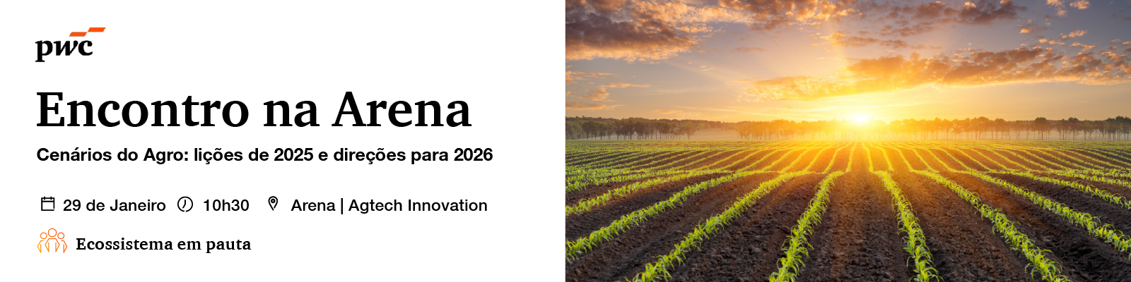 Ao realizar a sua inscrição, você declara estar ciente de que sua imagem poderá ser captada e utilizada em materiais audiovisuais relacionados ao PwC Agtech Innovation. O uso da sua imagem será realizado em conformidade com a Lei Geral de Proteção de Dados (LGPD) e para fins institucionais e promocionais.